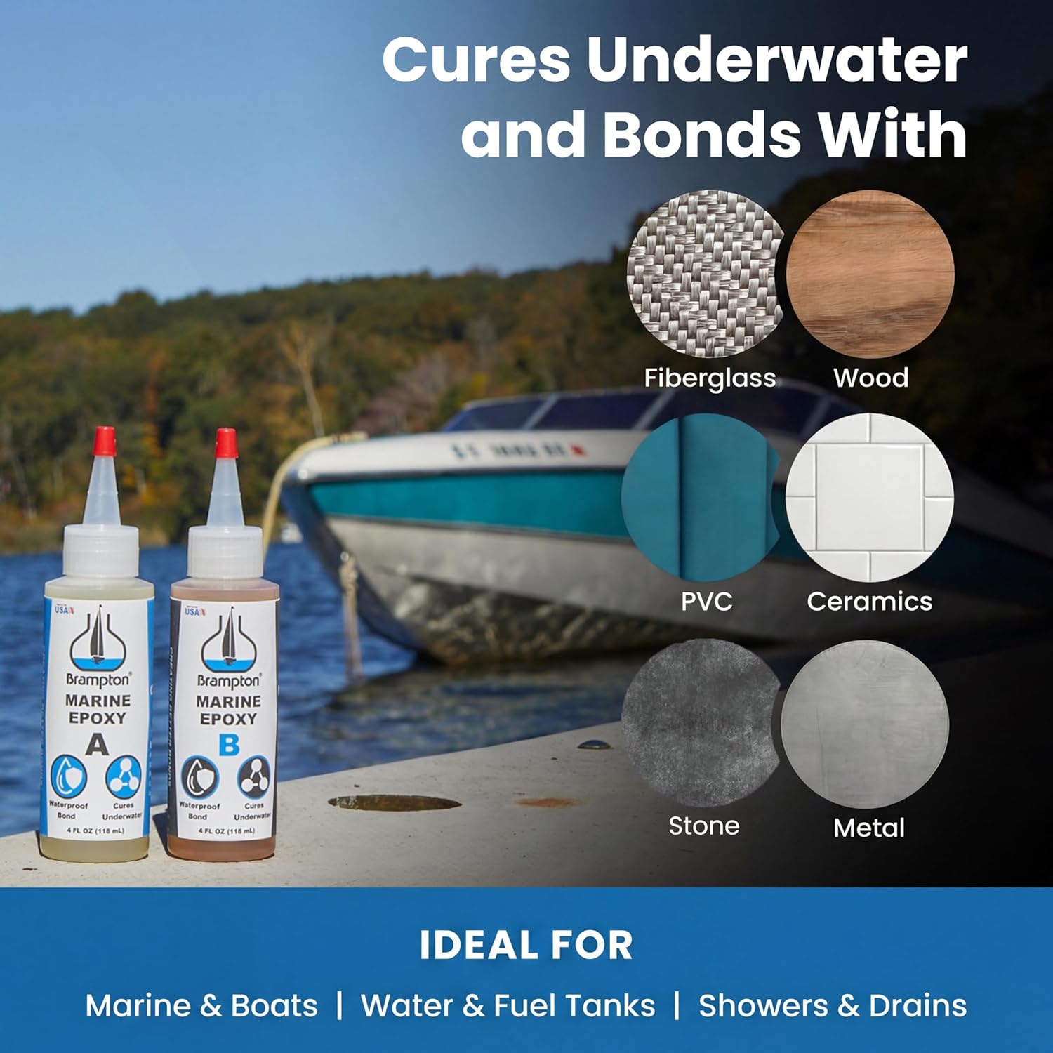 Ensure your vessel stays seaworthy with Brampton Technology’s Marine Epoxy — a premium waterproof epoxy engineered for boat owners, sailors, and marine enthusiasts. Formulated to cure in just 1 hour at room temperature, this fast-setting marine epoxy creates a durable, underwater-ready bond that excels on fiberglass, wood, metal, ceramics, and most plastics, making it ideal for boat hull repairs, deck fixes, plugging leaks, and sealing water or fuel tanks. With excellent resistance to chemicals, petroleum, impact, and harsh marine environments, it’s a reliable companion among boat accessories for both routine maintenance and emergency sailing repairs. Easy to mix and apply in a 1:1 ratio, this epoxy also sands and paints after curing, offering long-lasting strength you can trust on and off the water.
