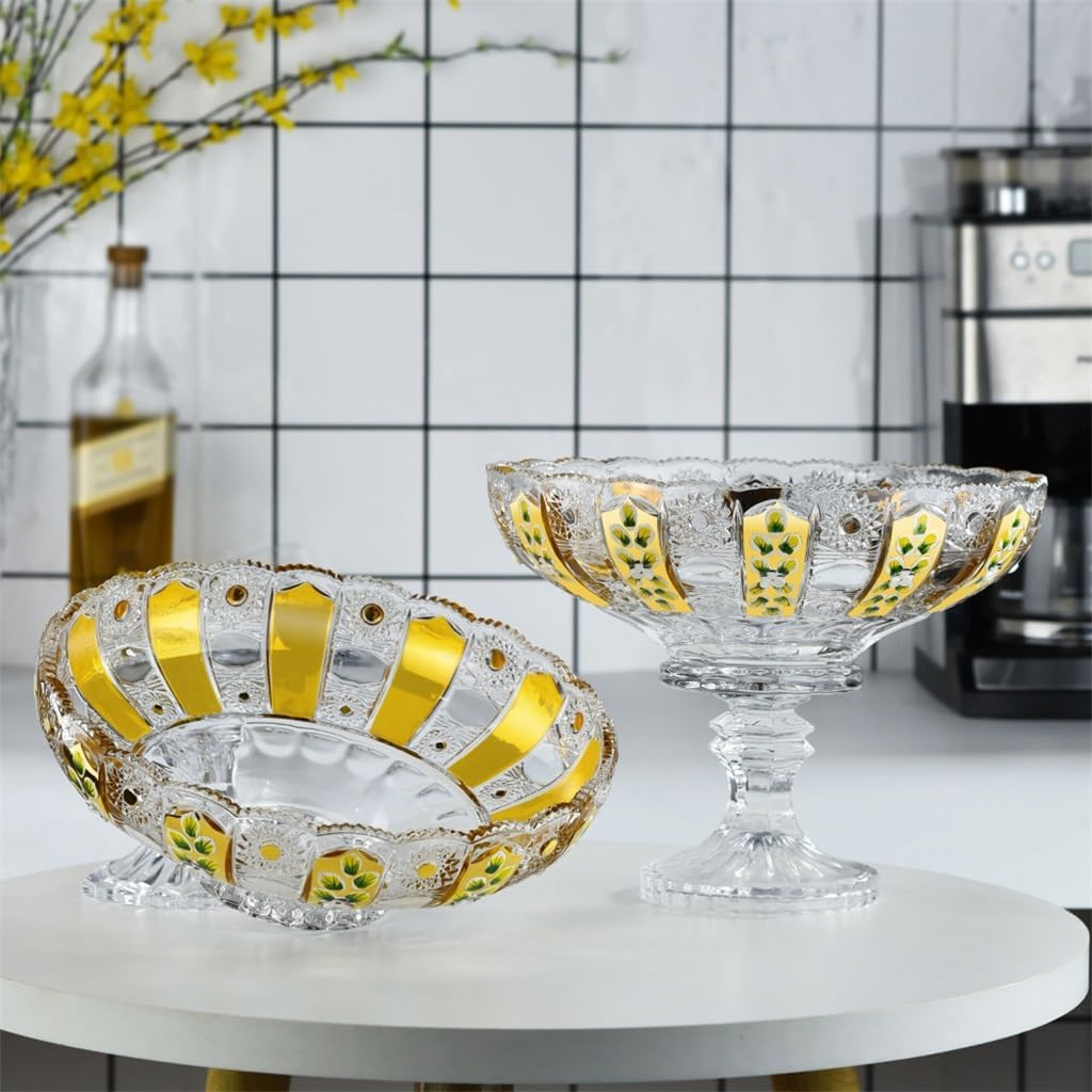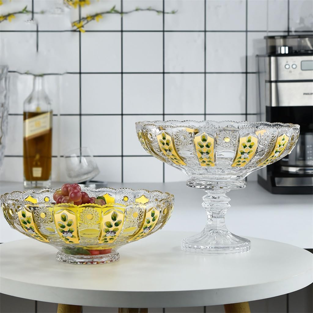 Enamel flowers, crystal glass fruit bowl, easy to integrate into the home environment use but not obsoleteHighlights in the smooth real gold watercolor gold craft, enamel flower art painting techniques, instantly enhance the home gradeCrystal glass material, smooth base, placed firmlyCrystal glass material, round and thick, the product is beautiful and practical, fashionable and not lose stabilityHand-painted, enameled flower pattern, combined with crystal glass beautiful and generousMaterial: glassProduct size: A fruit bowl with feet Height: 237mm, width: 305mmWeight: 3423gB Without feet Height: 1 20mm, Width: 305mmWeight: 2300gPackage including:Fruit plate * 1(Other demo items not included).Note:Due to different monitors and lighting effects, the actual colour of the product may differ slightly from the colour shown in the pictures. Thank you!Please allow 1-2 cm deviation due to manual measurement.gift for housewarming, weddings, birthdays, or Mother's Day. Fits any home from farmhouse